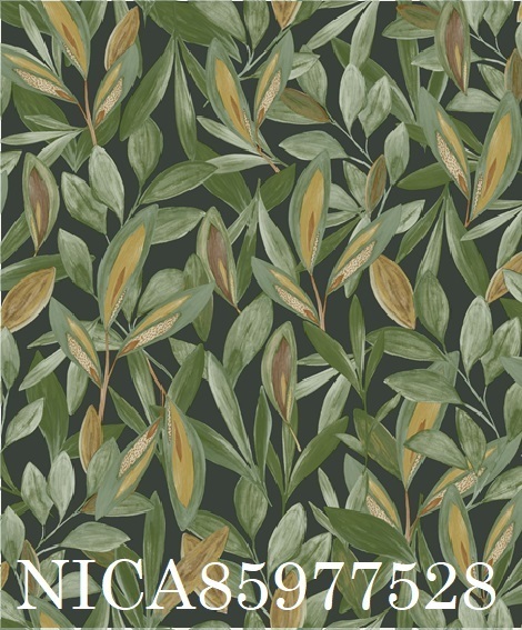 Papel pintado de esbeltas hojas de sauce. Verde, negro.
